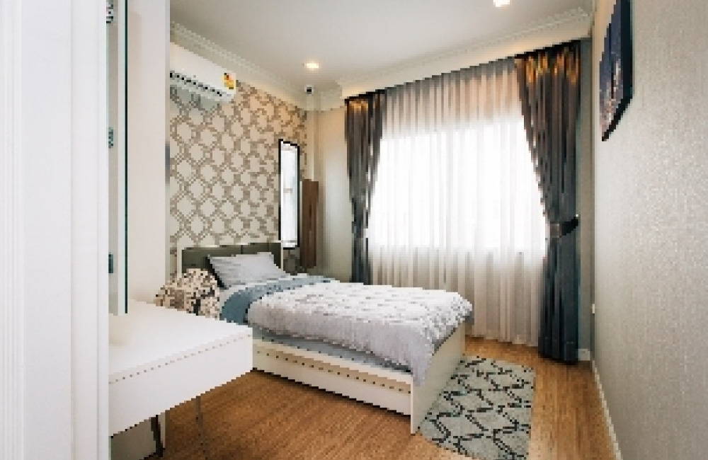 พื้นที่ใช้สอยกว่า 170 ตารางเมตร 4 ห้องนอน 3 ห้องน้ำ พร้อมโซน Personal Living Room ห้องนั่งเล่น 1 ห้อง ห้องรับแขก 1 ห้อง ครัวฝรั่ง 1 ห้อง พร้อมครัวไทยและโซนซักล้าง จอดรถในบ้าน 2 คัน